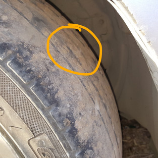 * בנוסף מצאתי 'גולה' בדופן אחד הצמיגים – היפרדות שכבות בדופן הצמיג כתוצאה ממספר גורמים אפשריים, אחד מהם יכול להיות מפגש אלים של הצמיג עם מדרכה או בור